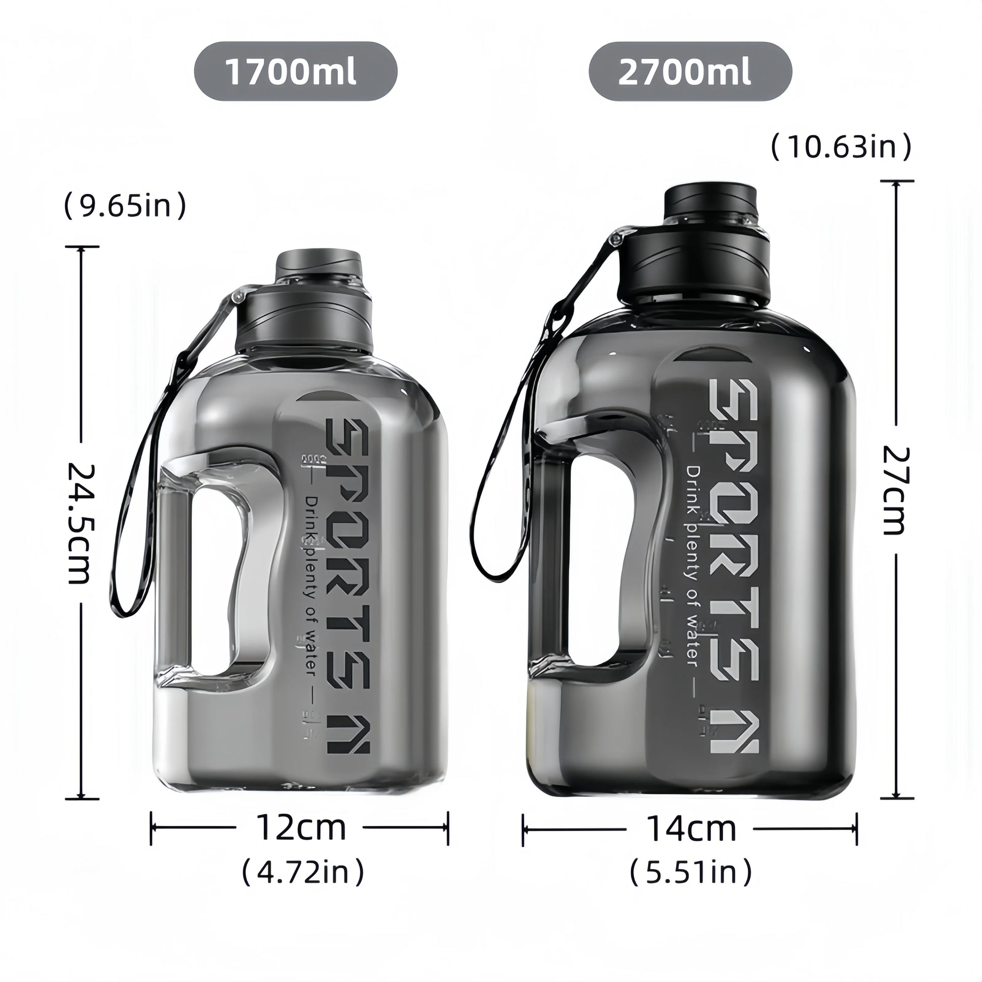 Garrafa de água desportiva em plástico com grande capacidade