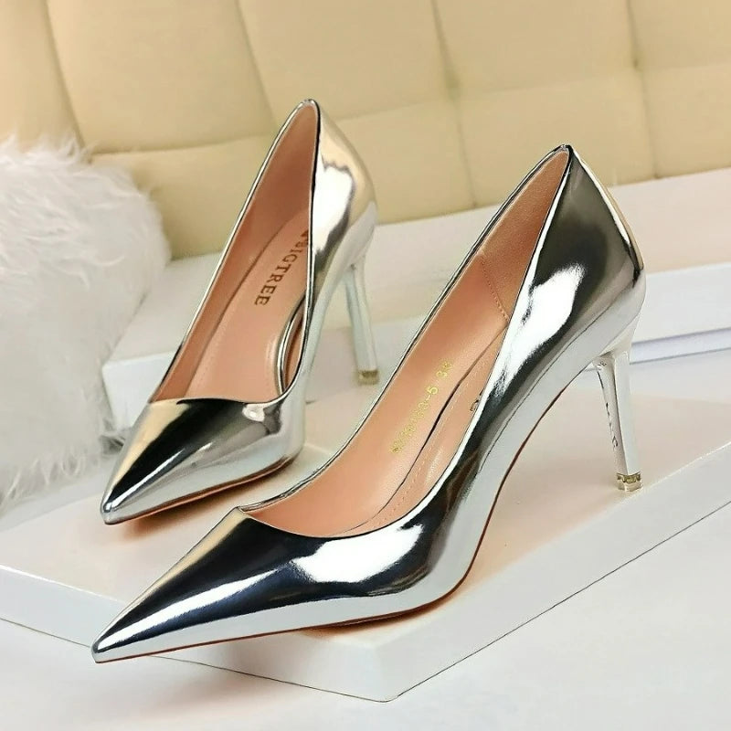 Bombas femininas de couro metálico: sapatos de qualidade