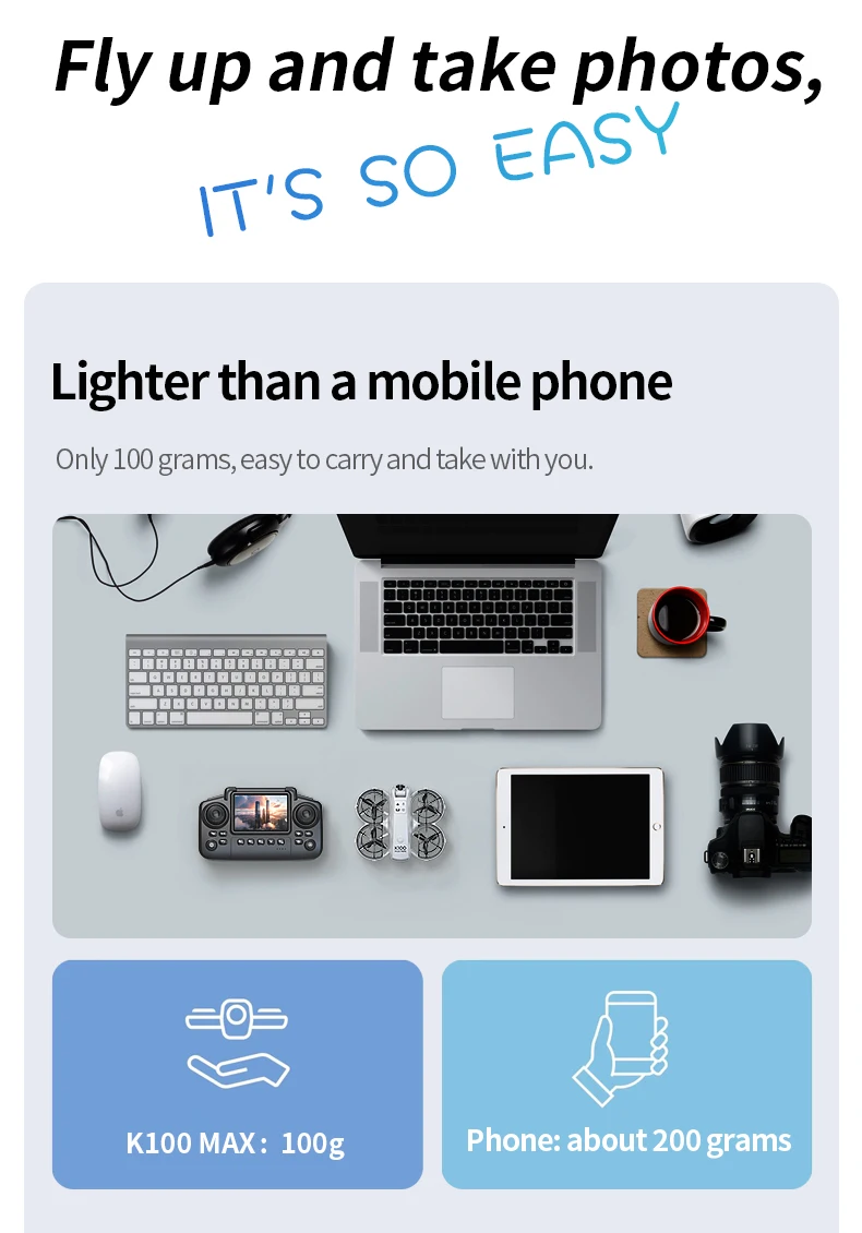 Drone K100 MAX com controle de tela