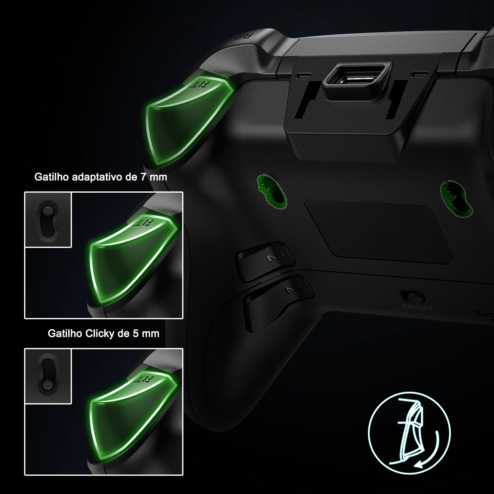 Tipo de botão de disparo: Efeito Hall linear